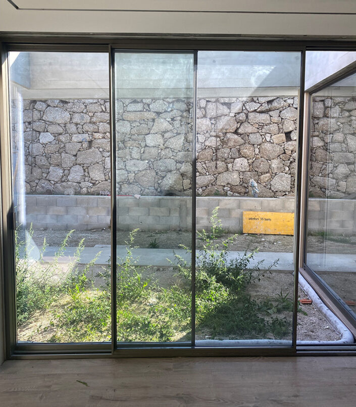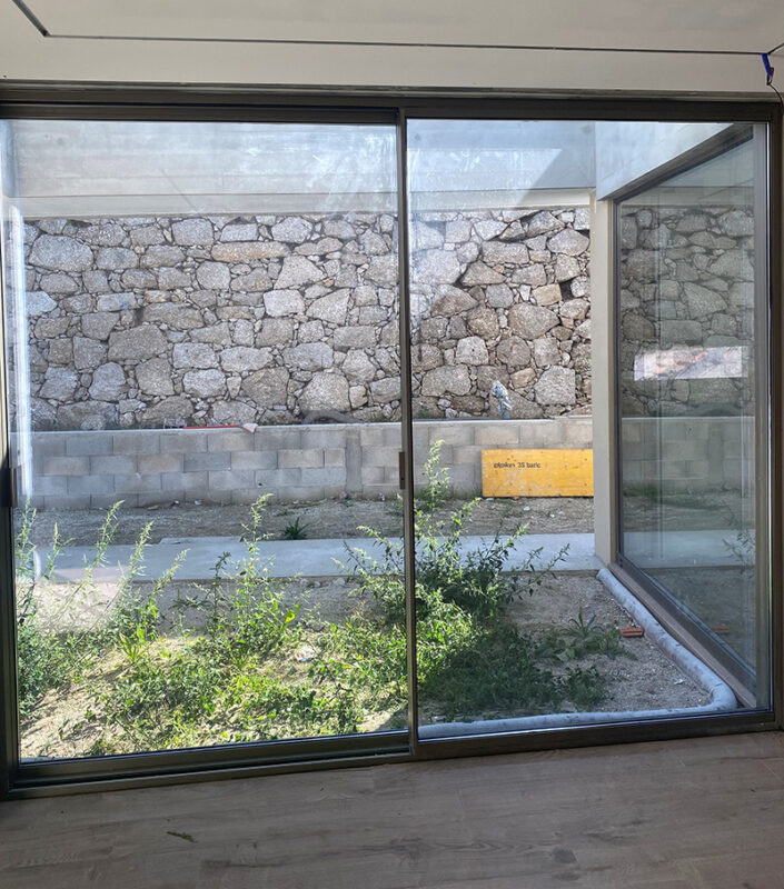 As portas são constituídas por perfis, reforços, vidro e ferragens.